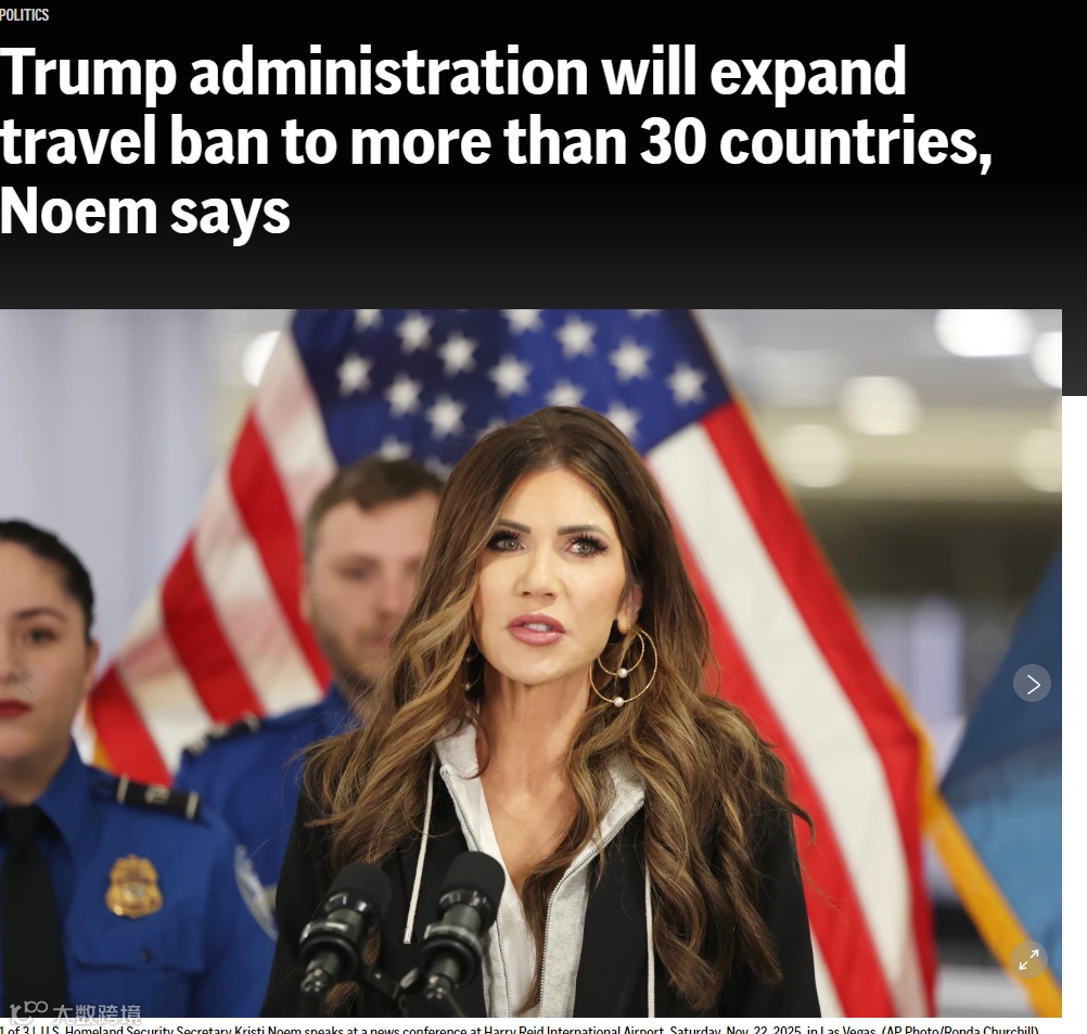 路透社指出,此次扩大入境限制的决定,也发生在美国近期一系列安全事件背景之下。上月,华盛顿发生枪击事件,造成两名美国国民警卫队成员及一名平民遇害。