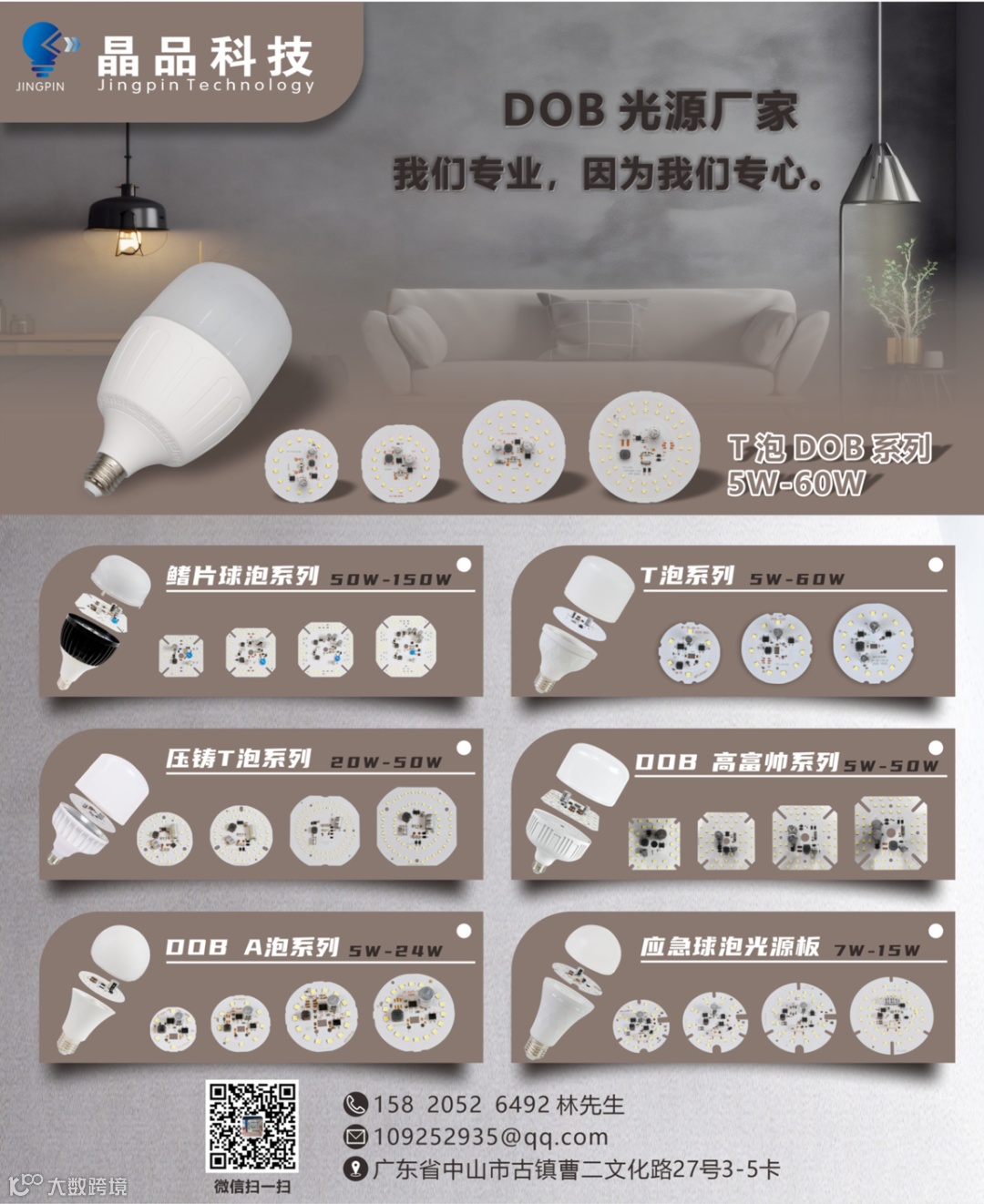 在照明科技领域,中山市晶品科技有限公司以DOB光源为核心,专注打造高品质的DOB T泡系列产品,同时提供专业的SKD服务,致力于成为行业领先的光源解决方案供应商。我们深知,专业源于专注,因此从研发到生产,从销售到服务,每一步都凝聚匠心,只为呈现更稳定、更高效的DOB光源产品。