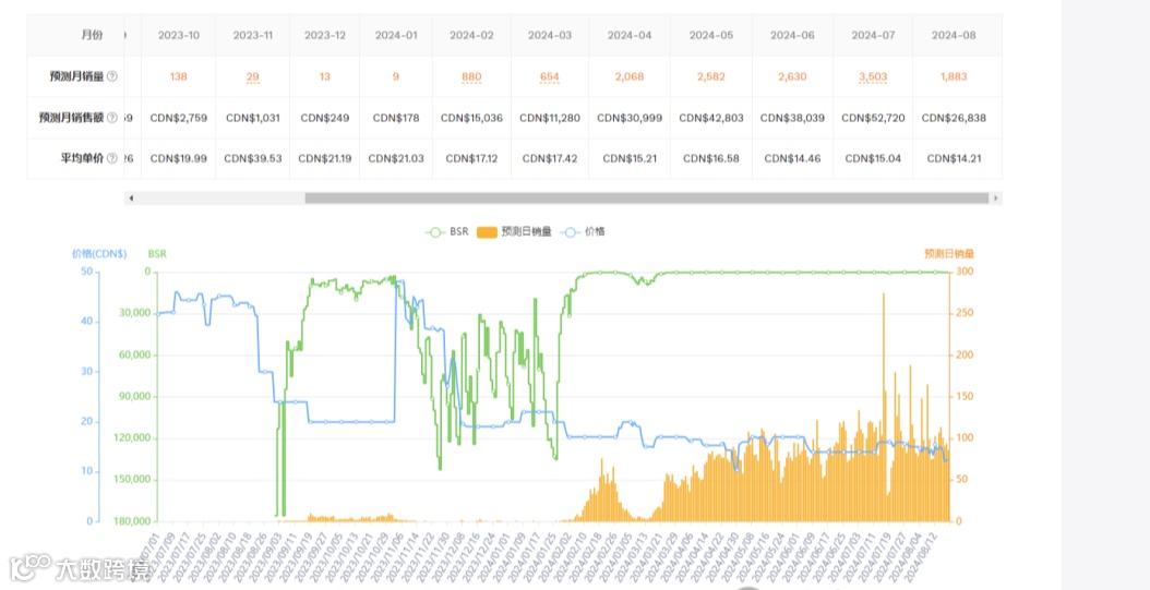 产品销量趋势图(来源于卖家精灵)