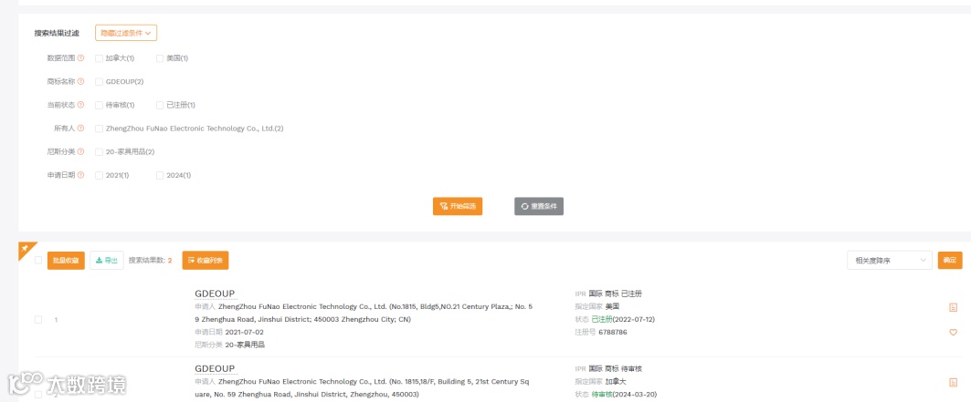 商标查询(来源于卖家精灵)