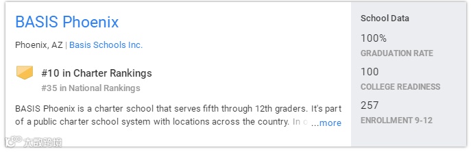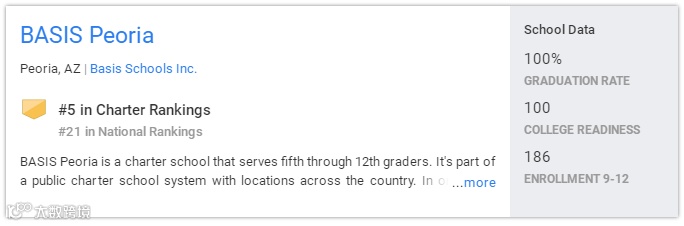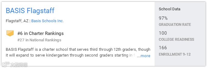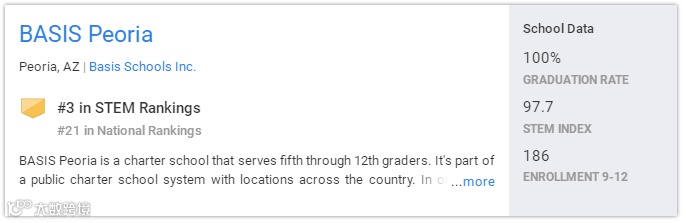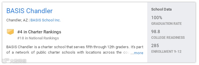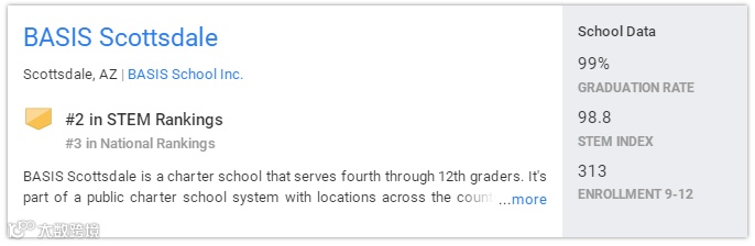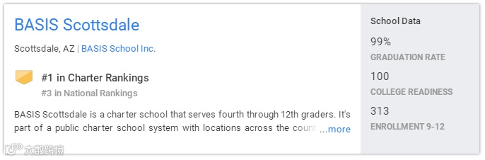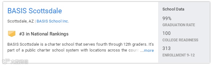 第三名,亚利桑那州BASIS Scottsdale。BASIS的创始人是一对拥有博士学位的夫妻,因为不满女儿学校的教育水平于是决定自己创立学校,目的是将学生的学术水平提高到国际最高标准。