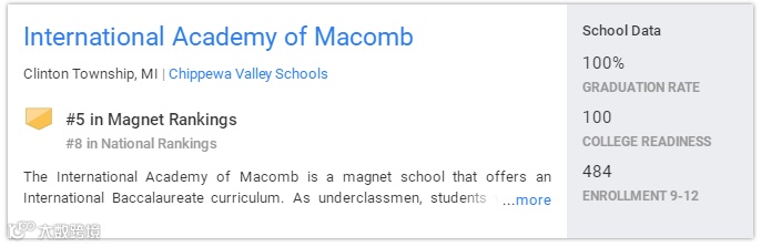 US News的排名主要根据6个指标来进行,包括“备考大学准备”、“AP和IB课程”,以及“阅读与数学”、“学生服务”、“大学课程推广度”、“毕业率”等。
