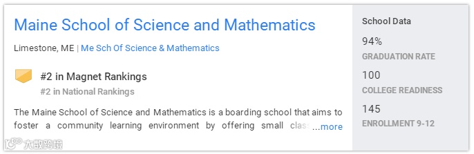 第二名,缅因州School of Science and Mathematic,专注于STEM专业的寄宿学校。