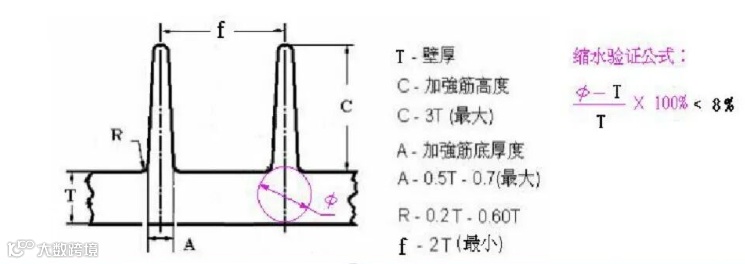 厚度:筋的厚度应为壁厚的 0.5~0.7倍。