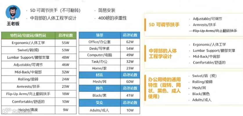结合自身卖点:根据产品特性挖掘差异化关键词,例如针对办公椅,可以提炼“人体工程学设计”“久坐舒适”“可调节高度”等卖点关键词。