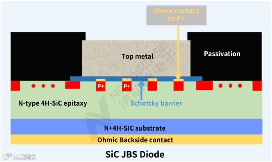 纳芯微推出1200V系列碳化硅二极管产品,适用于光伏、储能、充电等工业场景。该产品在单相或三相PFC、隔离或非隔离型DC-DC电路中均能展现出卓越的效率特性,完美满足中高压系统的需求。由于采用MPS结构设计,与传统JBS结构相比,具有显著优势。MPS结构中的PN结构在大电流下更容易开启,通过向高电阻的漂移区注入少数载流子形成电导调节效应,从而显著降低漂移区的导通电阻。在保持器件正向导通电压不变的情况下,器件的抗浪涌电流能力得到显著增强。纳芯微的碳化硅二极管具有更低的正向导通电压,在瞬态高电流冲击时具备更强的抗浪涌能力。这种性能优势使其在高功率应用中表现出色,为系统的可靠性和稳定性提供了重要保障。