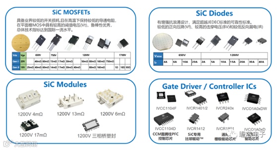 瞻芯电子目前已开发量产650V-1700V平台的碳化硅MOSFET、肖特基二极管及功率模块产品,规格参数齐全,且有多种贴片、插件、模块封装;同时围绕碳化硅应用开发了多种系列栅极驱动芯片,包括碳化硅专用驱动、通用驱动、隔离型驱动。