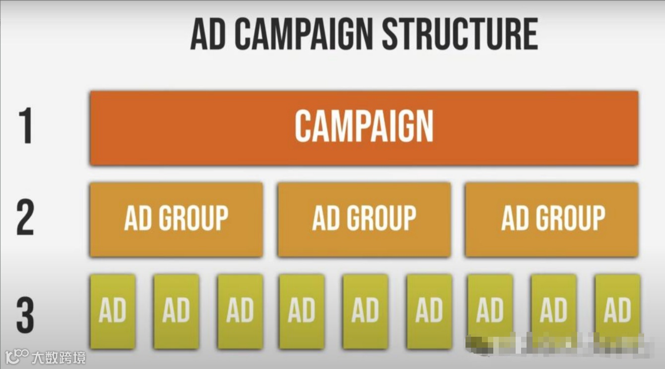 TikTok广告分为三层结构:Campaign(系列)、Ad Group(广告组)、Ad(广告)