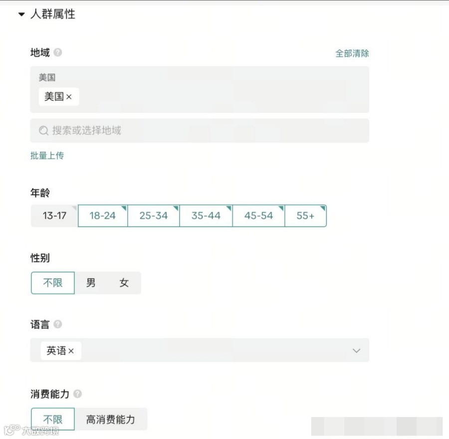 根据产品属性设置国家、年龄、性别、兴趣等定向条件