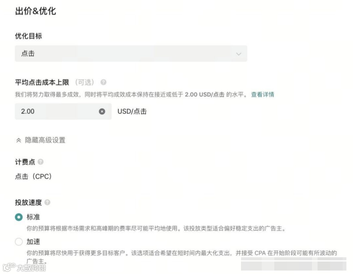 选择优化目标(初期建议积累数据后再调整),根据曝光情况灵活调整出价