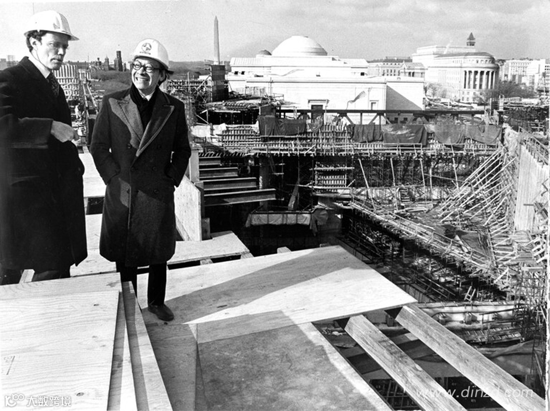 1975年2月7日,美国国家美术馆馆长J. Carter Brown(左)与建筑师贝聿铭(右)在东馆屋顶合影