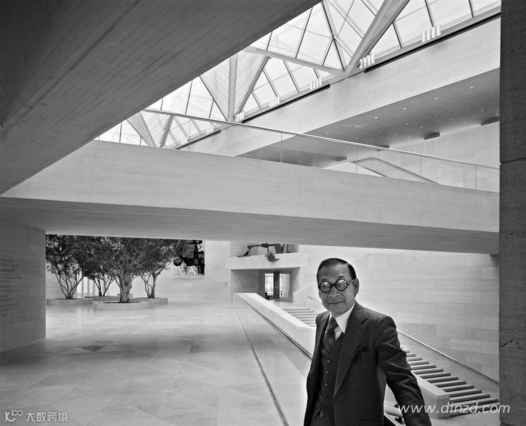 建筑师贝聿铭在其设计的国家美术馆东馆的中庭内 ©Ezra Stoller
