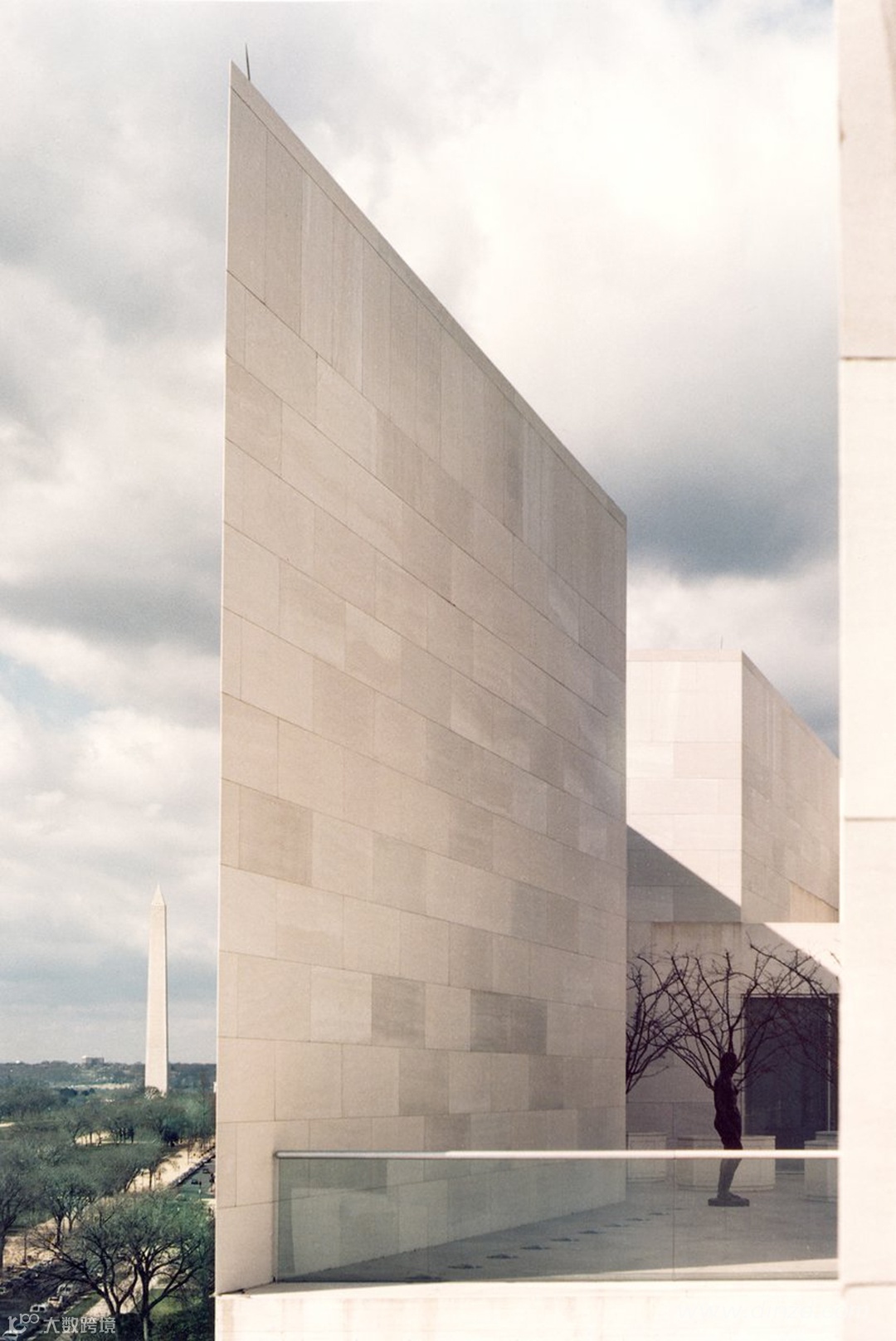 这8.8英亩(3.6公顷 )的场地无疑是全美国最受关注的区域。当年由皮埃尔·朗方( Pierre LEnfant)做出的城市规划里,这块地正在国会大厦脚下,宾夕法尼亚大道和国家广场交汇形成一个梯形场地。保罗的父亲,极具前瞻性的安德鲁,梅隆在1937年建设原馆的时候就买下了这块黄金场地。接下来的几十年间,陆续有人提出扩建的计划,不过都没有被采纳。馆长J.卡特,布朗( J.CarterBrown )打趣说,这些计划都没有考虑到这块地形状的特殊,而是直接在原馆中轴线上加建了一个小的矩形建筑。看起来就好像是原来的Beaux-Arts ( 学院派)风格的美术馆下了仔一样好笑。