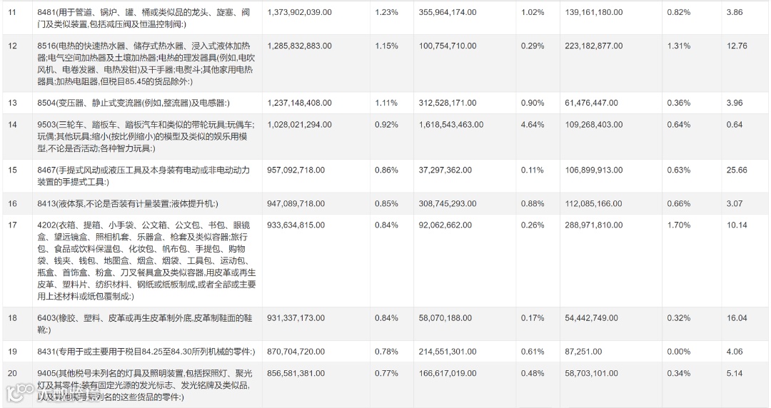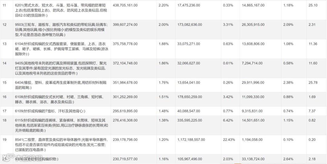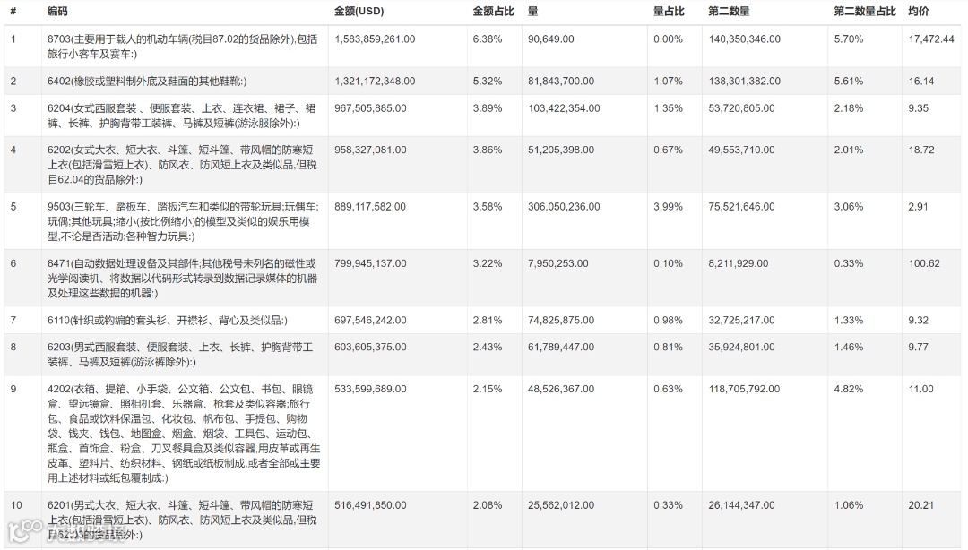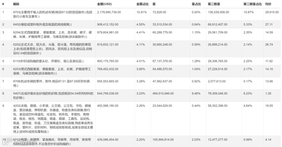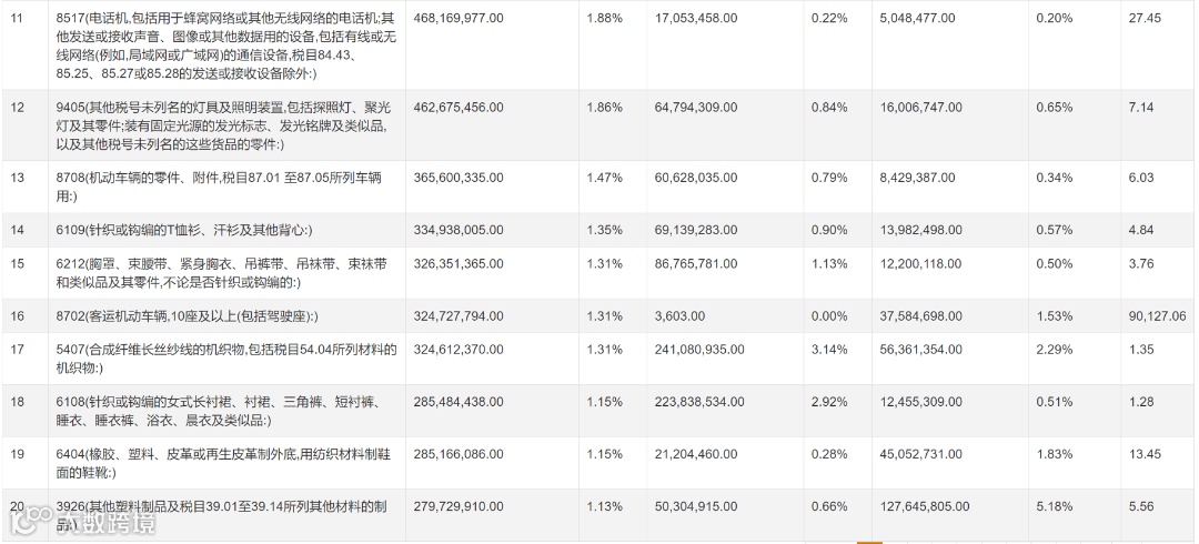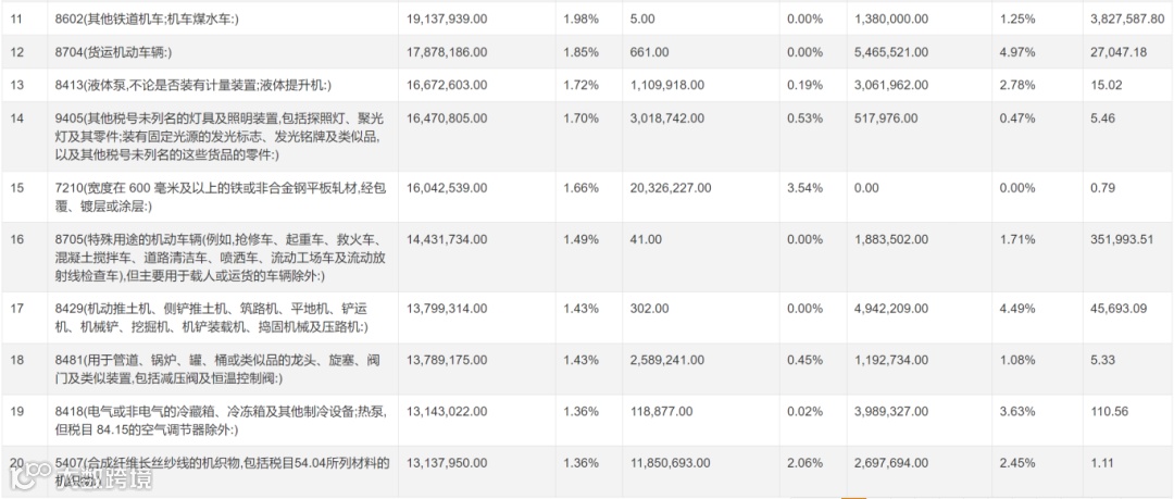 2023年 中国出口俄罗斯产品排行榜