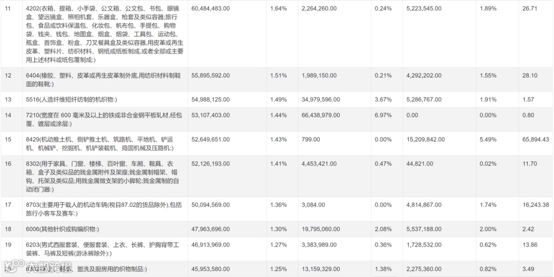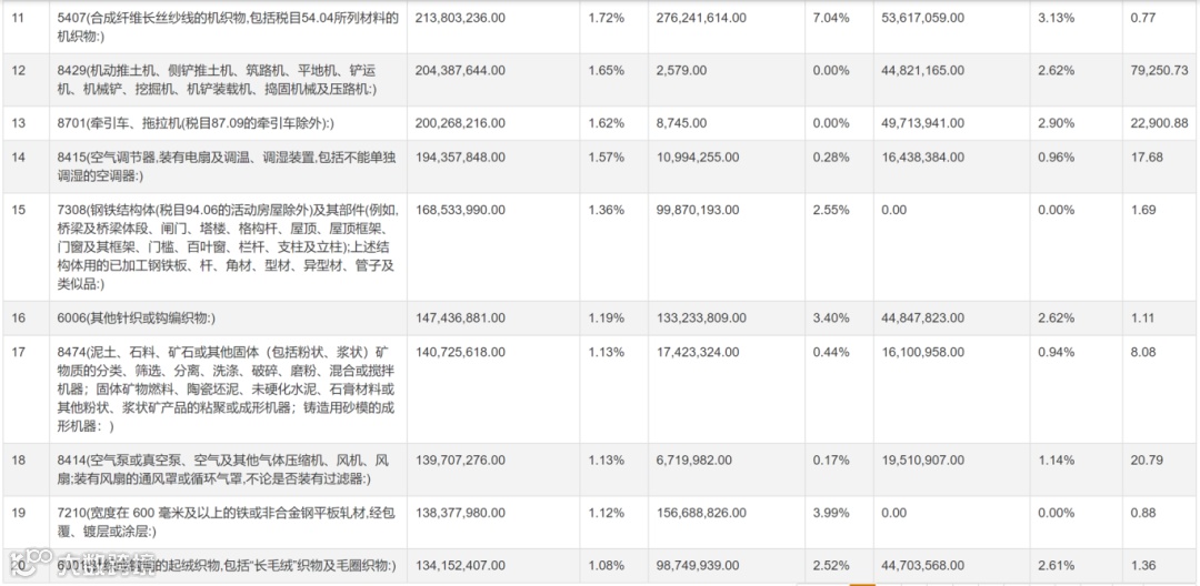 2023年 中国出口乌兹别克斯坦产品排行榜