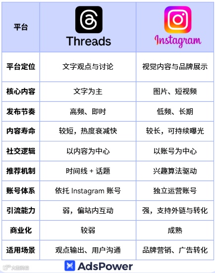 Threads 与 Instagram 属于同一账号体系,天然具备跨平台引流能力。