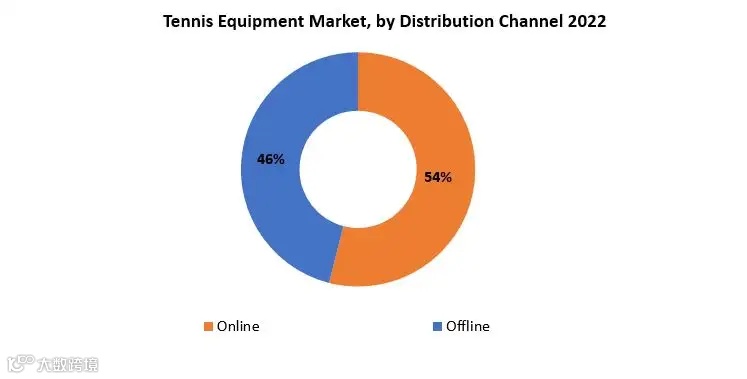 人们在线上购买网球装备所花费的金额是高于线下的。网球装备线上市场份额为54%,略高于线下的46%。通过网络平台销售和交付网球装备的统称为线上渠道,包括官方品牌网站、线上体育零售商和综合电子商务网站。