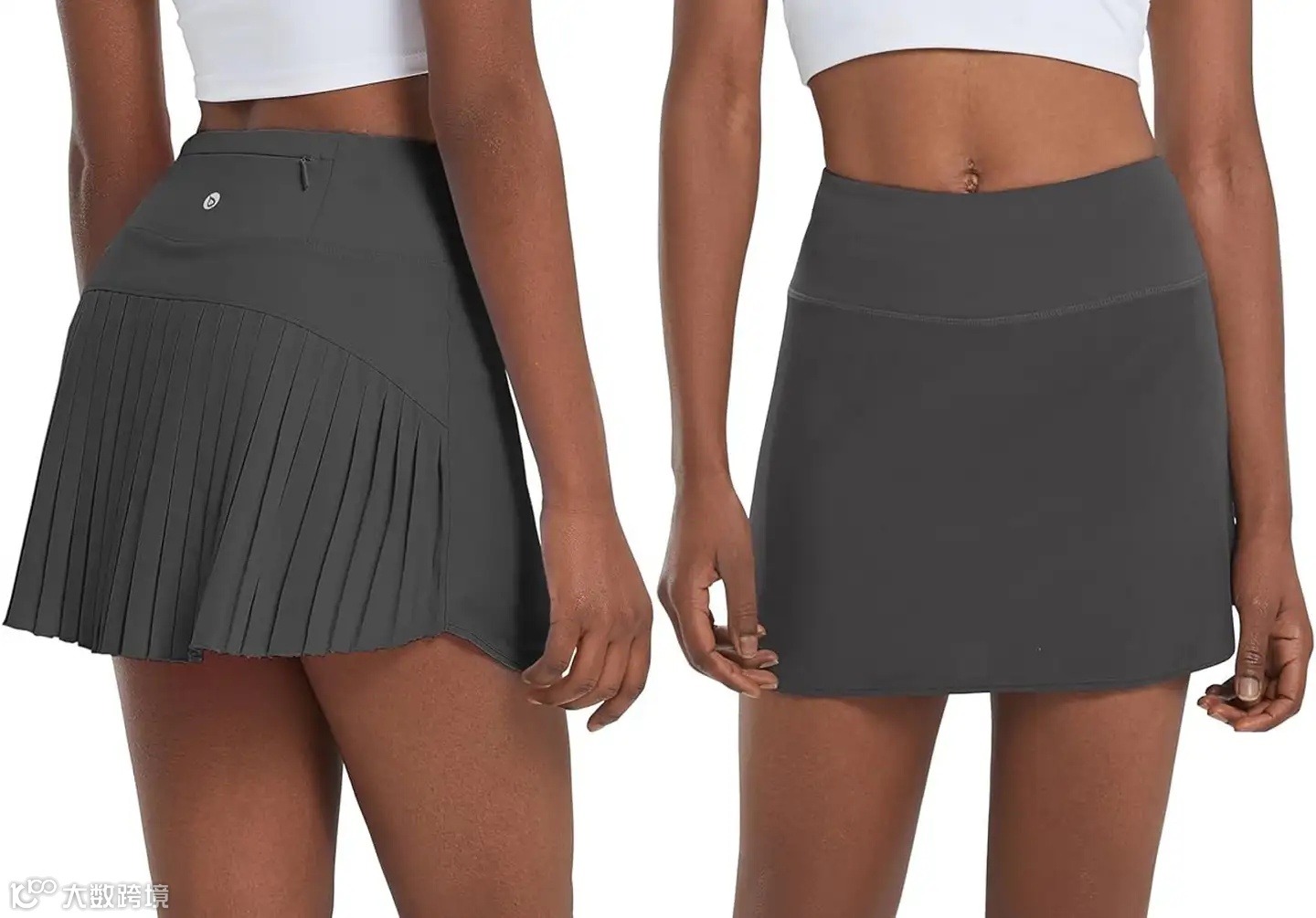 它也同时适用于网球和高尔夫运动穿着,裙身和里衬面料由90%涤纶和10%氨纶构成,腰部则是82%涤纶加18%氨纶,更大的氨纶占比提供更佳的弹性;同时腰部有抽绳可调节松紧,裤腿内侧有硅胶防滑条辅助固定,口袋数量也是3个;共有2种褶皱款式、15种颜色和6种尺码选择。