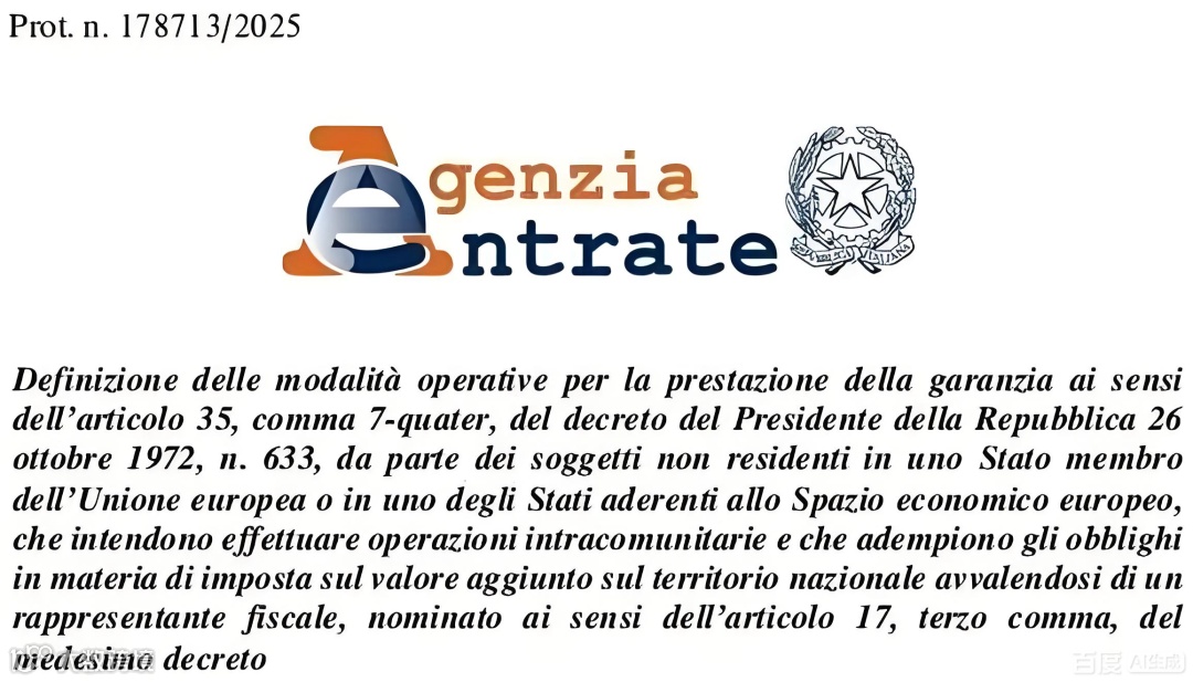 除财务代表层面的合规要求外,意大利税局对非欧盟跨境卖家也提出明确要求:若想保留VIES(欧盟税号)资格,正常开展欧盟境内B2B交易的非欧盟卖家,需缴纳5万欧元保证金(或提供同等效力的银行保函、保险保函),保证金有效期至少36个月。