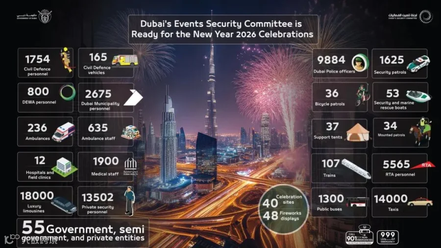 迪拜政府为 2026 年新年夜庆祝活动做了广泛安全和运营准备