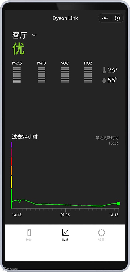 通过Dyson Link微信小程序,用户可对空气净化暖风扇等产品实现全面控制与监测: