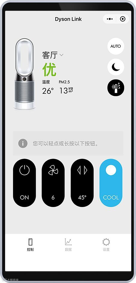 支持远程管理家中戴森设备,无论身处办公室还是通勤途中,均可提前开启或调节设备运行模式,到家即可享受舒适环境。