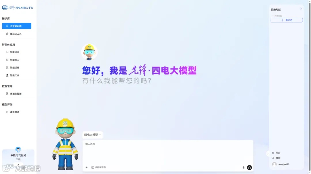 ▲中铁先锋四电领域大模型平台首页