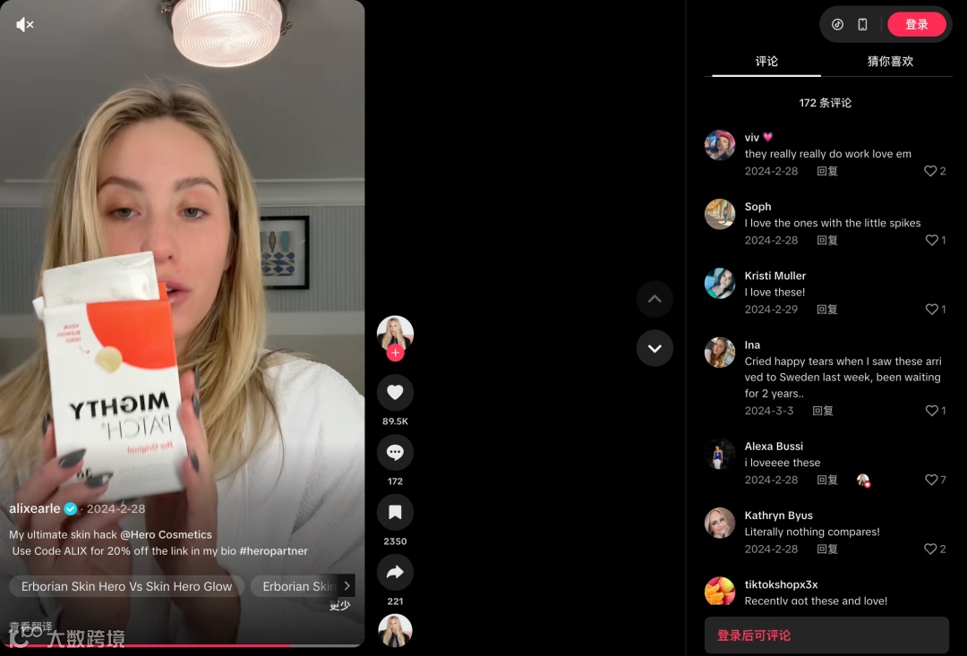 在 品牌与 Alix 的合作视频中,你看不到生硬的广告词语。Alix 只是在她的日常聊天和化妆流程中,自然地展示昨晚贴着 Mighty Patch 睡觉,早上起来撕掉它,并惊叹于它吸出了多少脏东西。