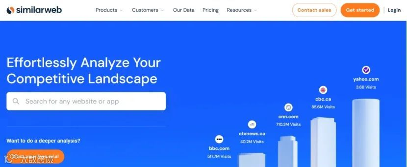SimilarWeb 是一个强大的网站分析和关键词查找工具,虽然每日的免费次数有限,但它可以帮助跨境卖家深入了解竞争对手的表现、网站排名和流量趋势、流量来源以及其他关键的市场情报,帮助卖家优化自己的SEO 和 PPC(付费点击)广告策略。