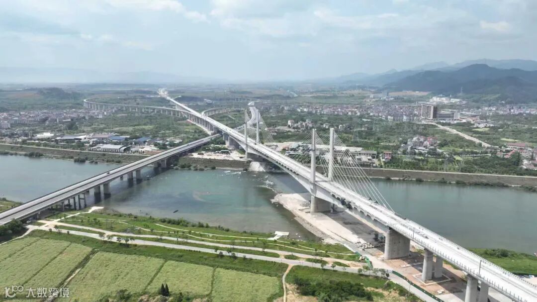 中铁三局承建的国内首座高速铁路大跨径三线矮塔斜拉桥——常山江特大桥是杭衢高铁和九景衢铁路上行联络线三条线路跨越常山江的共同通道