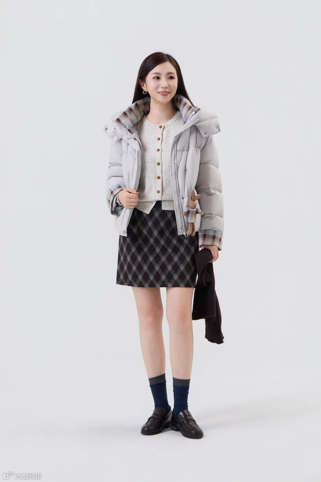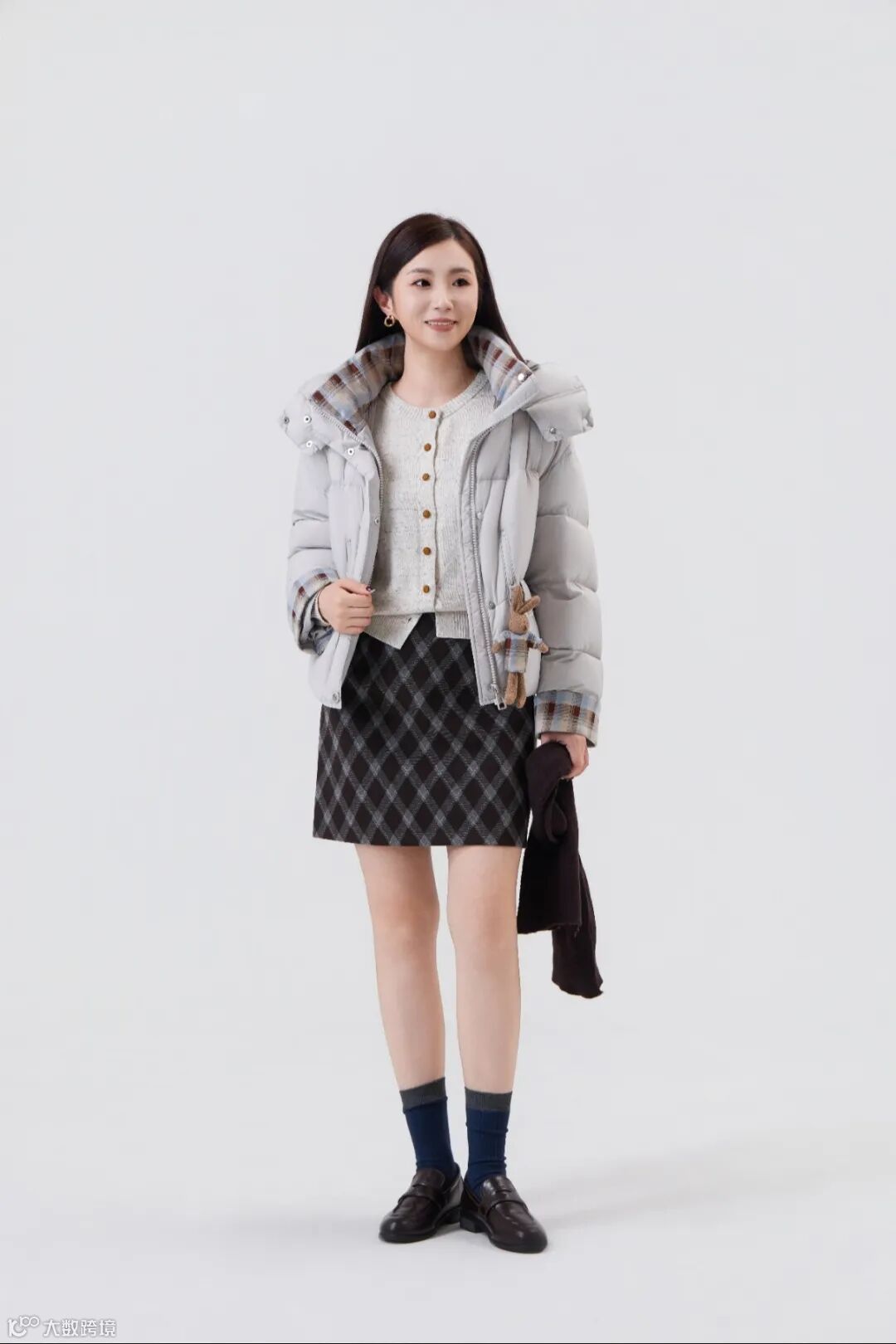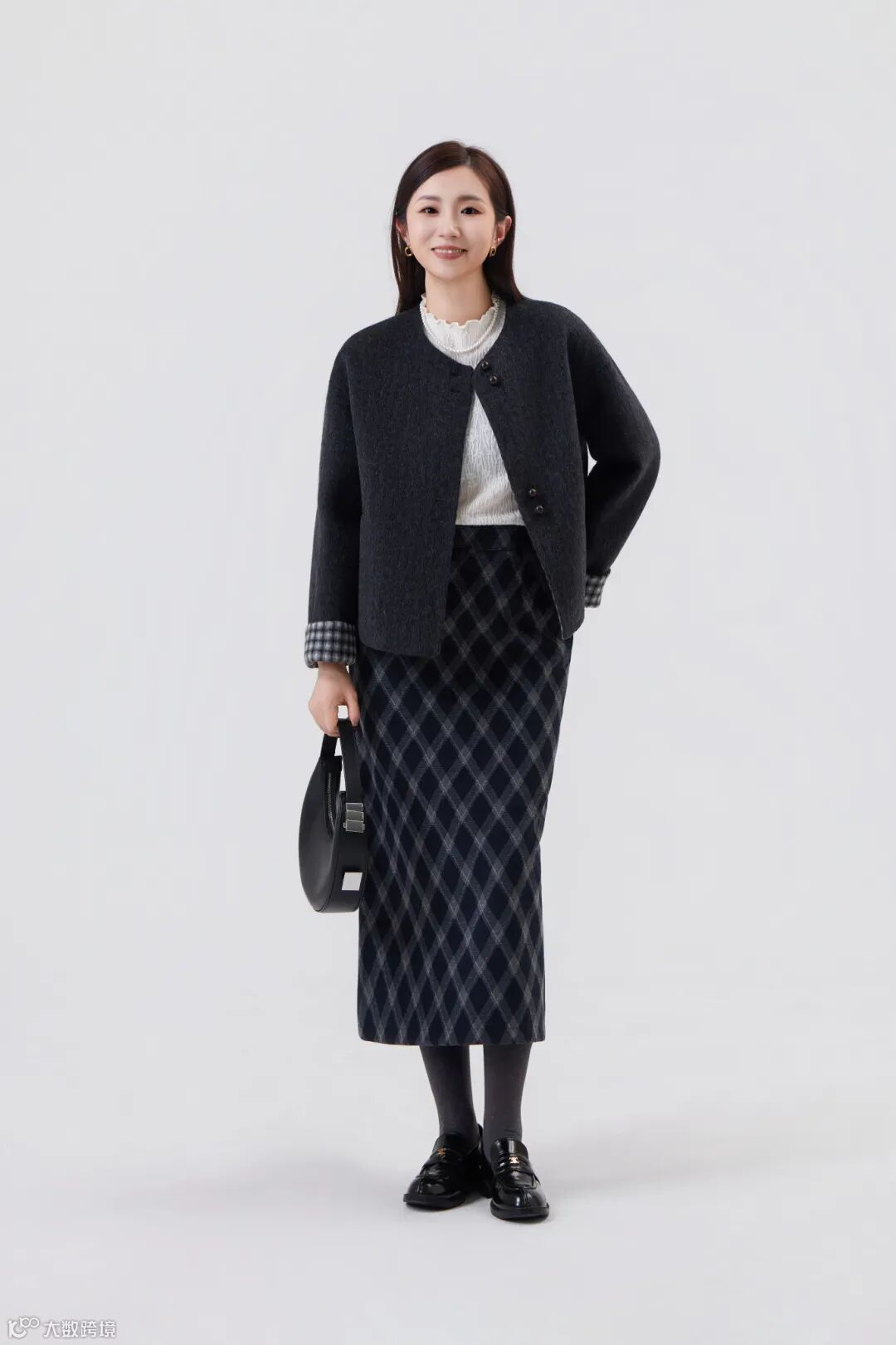 搭配菱格纹毛呢短裙