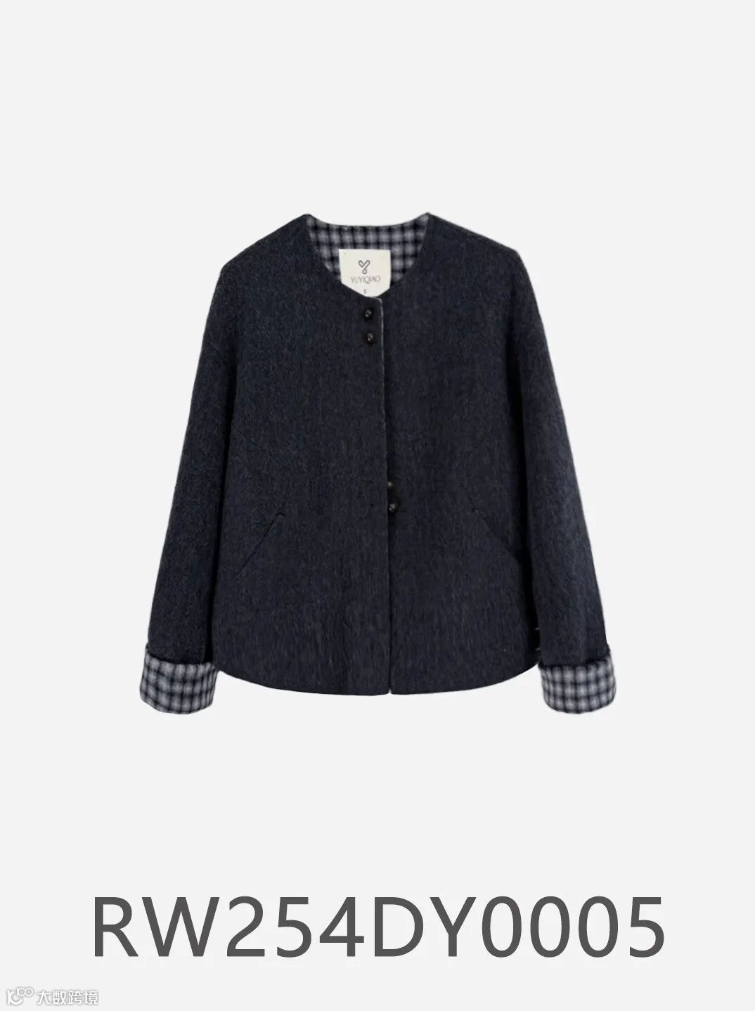领口和袖口格纹拼接