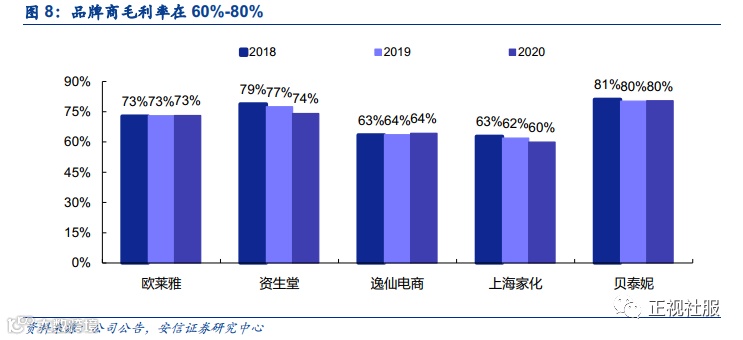 品牌商毛利率为60%-80%左右,品牌商在化妆品产业链中占绝对主导地位,毛利率水平全产业链最高。以欧莱雅、资生堂、逸仙电商、上海家化、贝泰妮的为例,其毛利率在60%-80%之间。