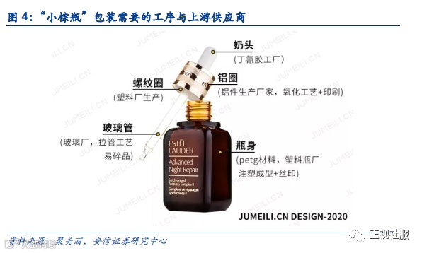 化妆品产业链大致分为原料供应、生产制造、品牌、营销、渠道等环节。