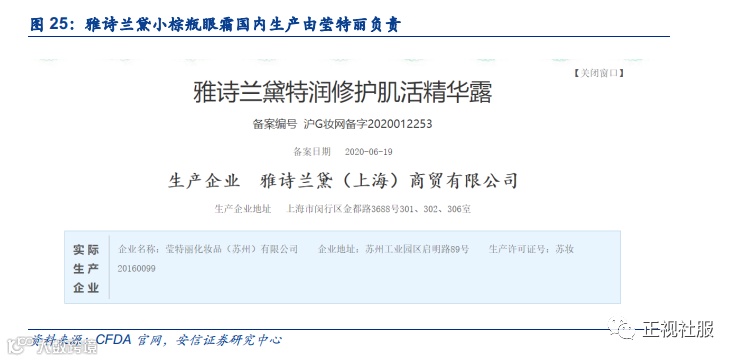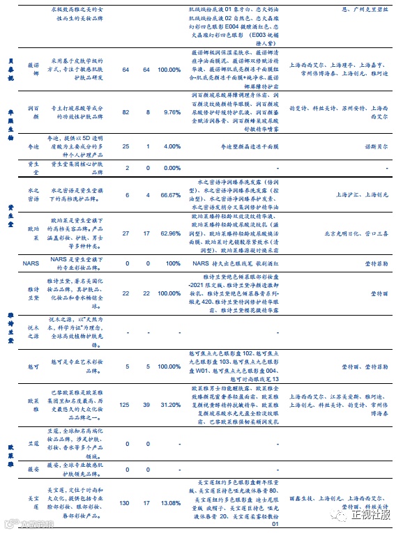 雅诗兰黛:在中国没有自有工厂,部分国内生产SKU(彩妆居多)均为莹特丽代工,多数产品由国外工厂生产原装进口。