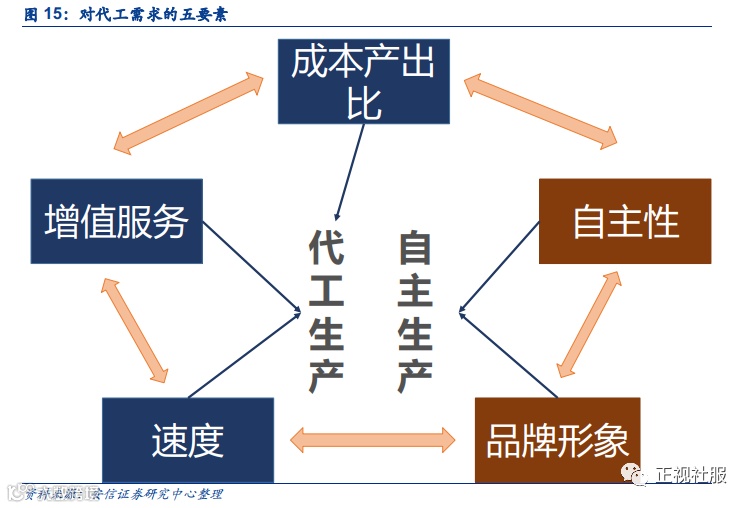 对成熟的国内外品牌,对于上游研发环节更为重视,在自己不擅长的领域,或者代工厂有更先进的技术时,基于长期在生产端的合作关系,也需要代工厂研发端的增值服务,来增强自己在产品研发方面的竞争力。