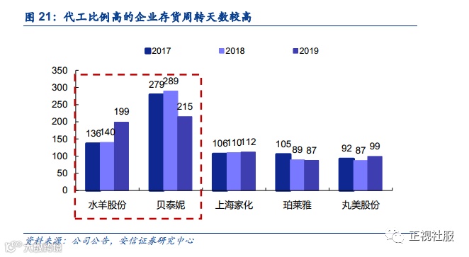 化妆品行业中,虽然品牌商相对于代工厂话语权相对较强,但是也受到代工厂质量管控、生产节奏、订单数量等多方面因素的影响和制约。受到代工厂生产节奏的影响,一般需要提前备货,存货相对较大。从化妆品上市公司存货周转天数来看,代工比例较高的水羊股份和贝泰妮存货周转天数为130-290天,比自产为主的化妆品公司存货周转天数(80-110天)更长。