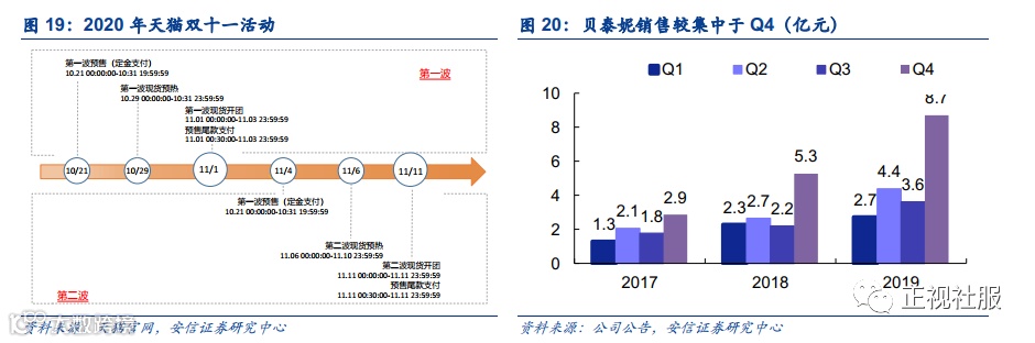 生产淡旺季明显,化妆品公司通常会出现季节性产能不足。化妆品销售受促销活动影响较大,情人节、“双十一”等节日期间,品牌商通常会组织促销活动,较好促进品牌销售。其中,双十一通常为化妆品牌全年活动力度最大、周期最长的促销活动之一,叠加秋冬季节天气干燥对日化产品需求量大,以及完成年度考核目标需要,化妆品销售通常集中在下半年,化妆品公司贝泰妮40%左右的销售在Q4完成(据公司公告)。受化妆品使用和销售的淡旺季影响,化妆品生产也存在一定季节性,尤其在促销活动旺季订单集中,通常会出现季节性产能不足的情况。