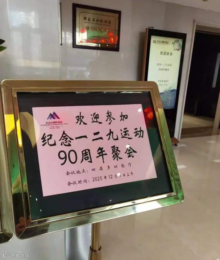 2025年12月9日,是伟大的“一二·九”运动90周年纪念的日子。北京“一二·九”后代联谊会在北京长白山国际酒店举办大型庆祝活动。到会的“一二·九”后代约250人。