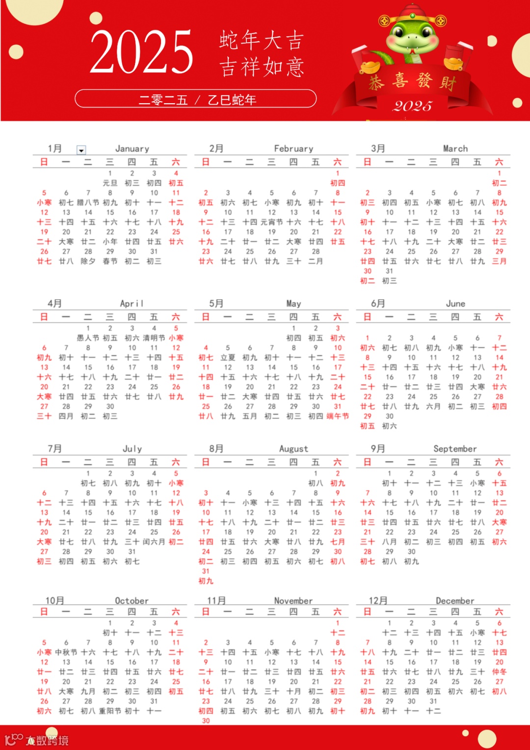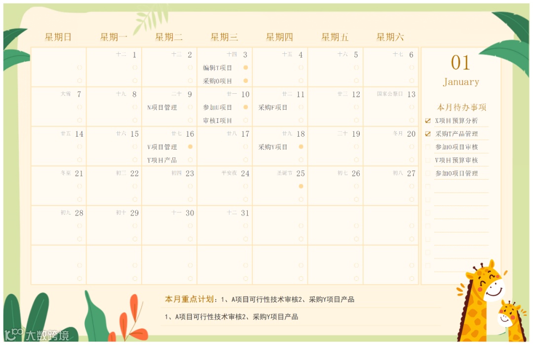 横版、竖版、带农历及待办事项,支持Excel编辑与打印