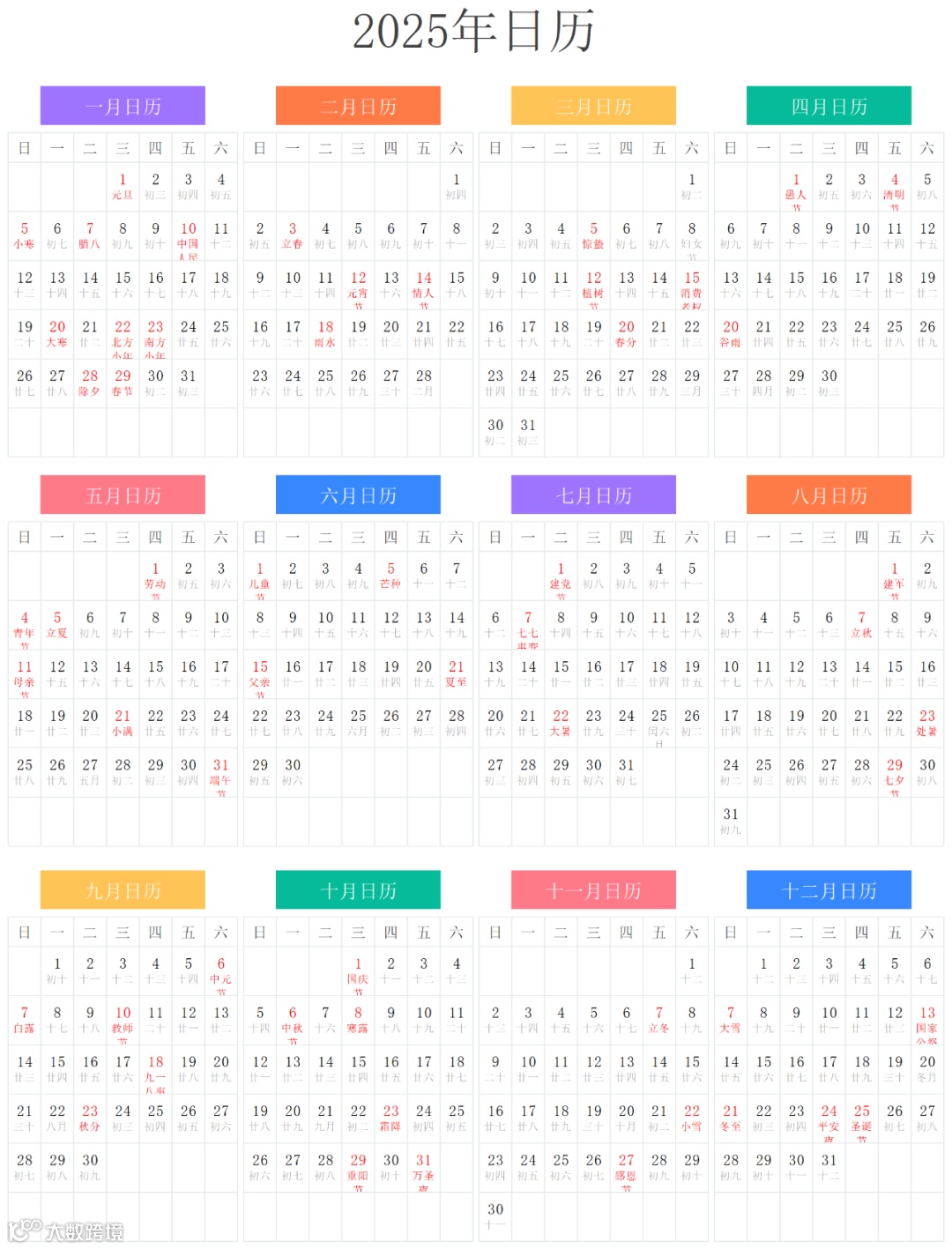 别找了,收集了33款2025年日历表格模板,拿去绝对够用!