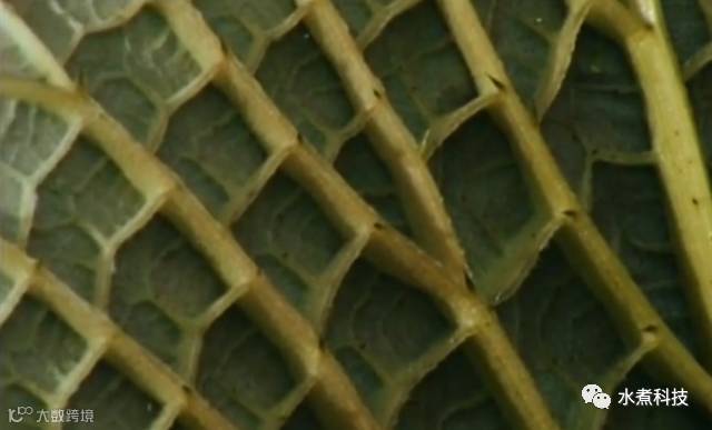 这叶子由一系列复杂的叶脉和叶柄支撑