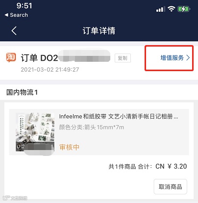 APP 在我的订单-增值服务。