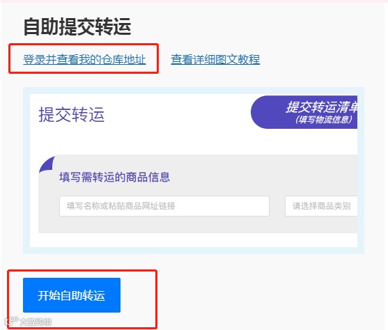网页版步骤:登录首页-转运(在此查看仓库地址)-开始自助转运