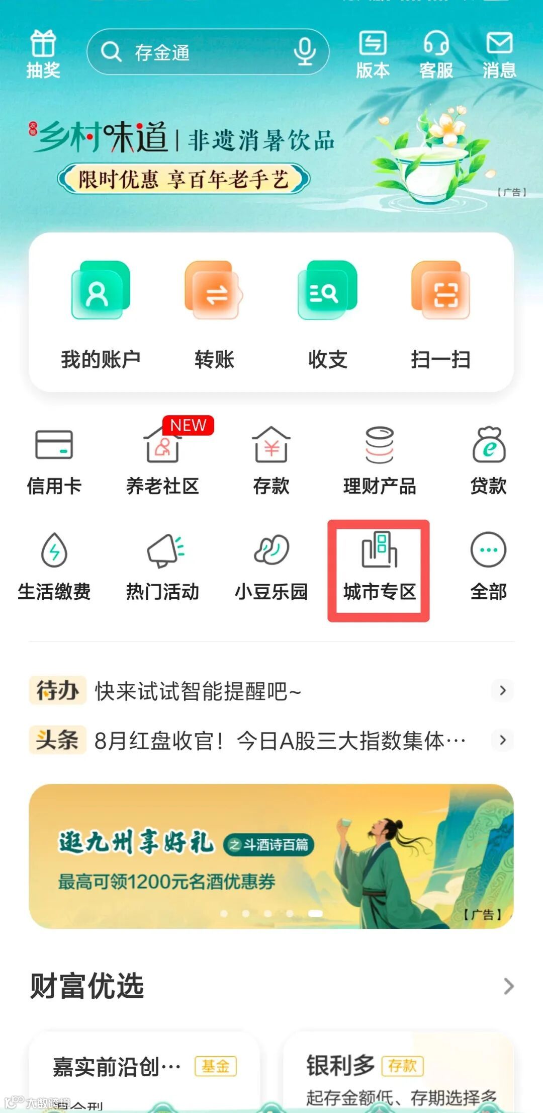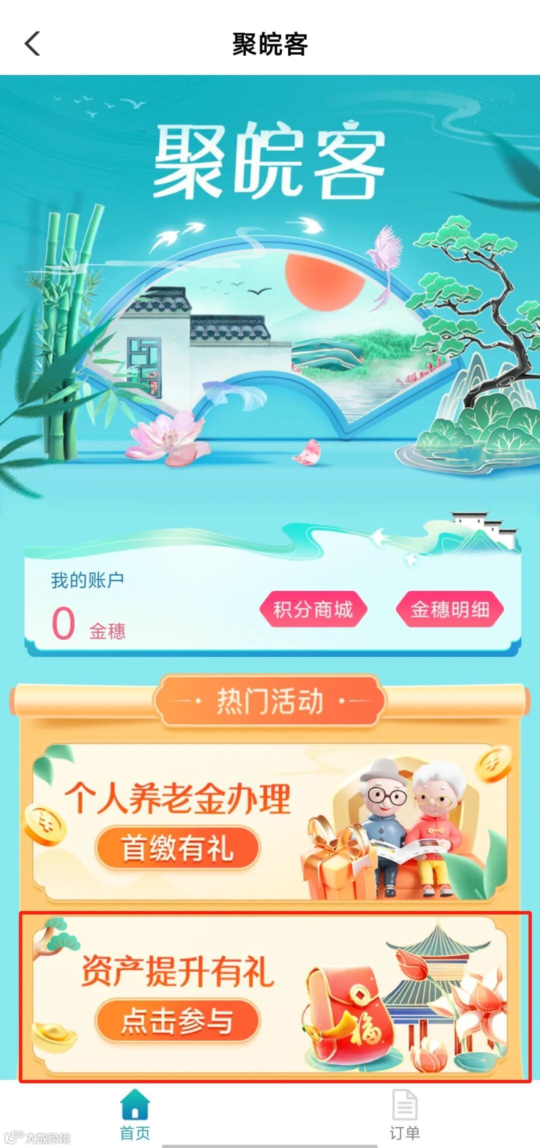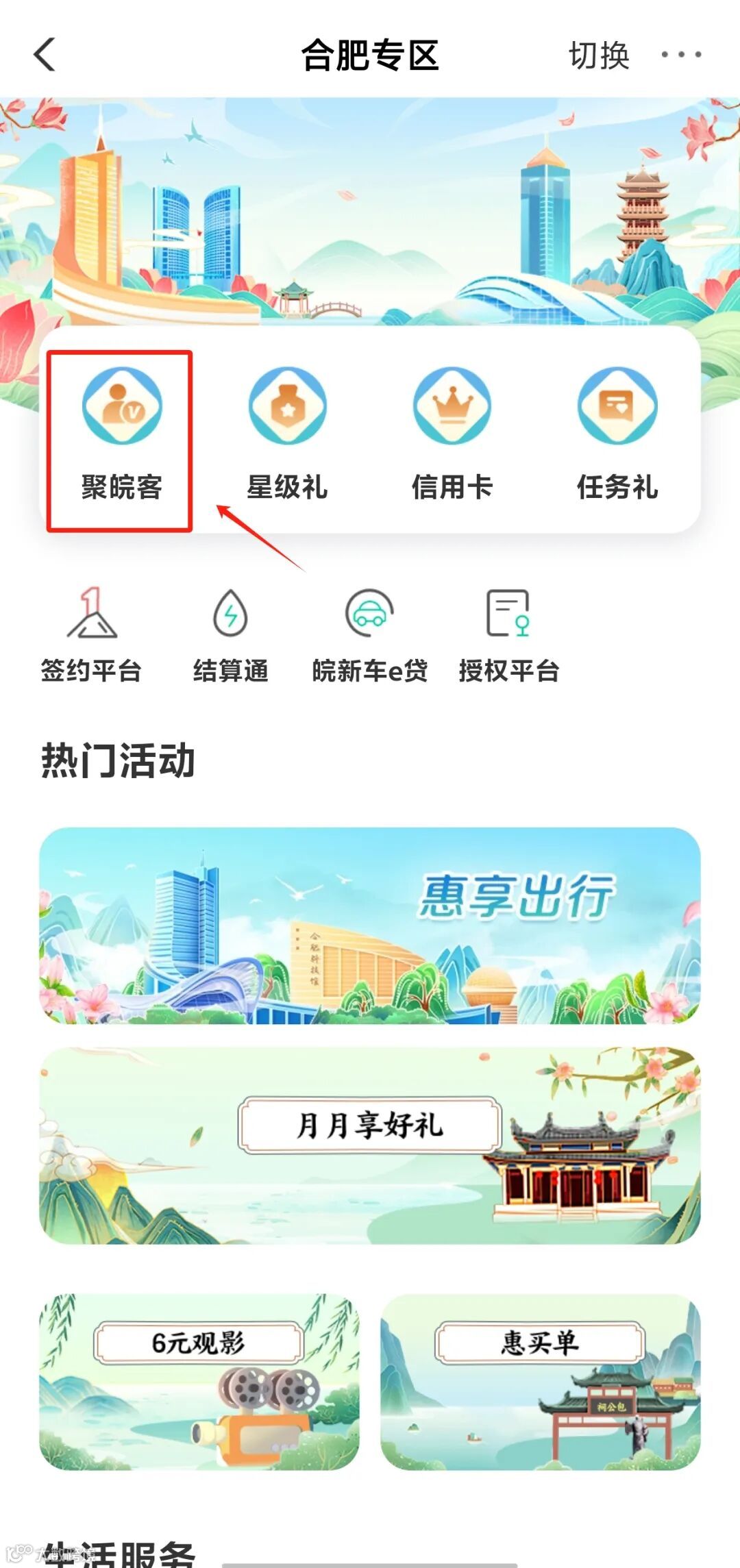 2、登录掌银-【城市专区】-【聚皖客】-【资产提升有礼】,即可进入活动专区。