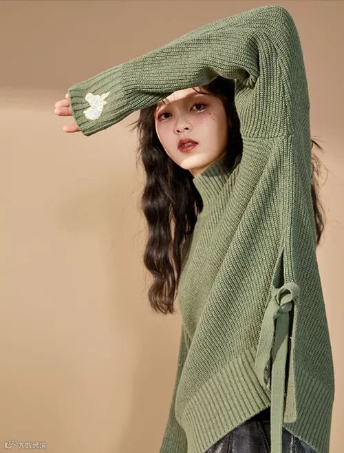 高领的设计可以抵御寒风,还能修饰脸型,独角兽刺绣俏皮加分。