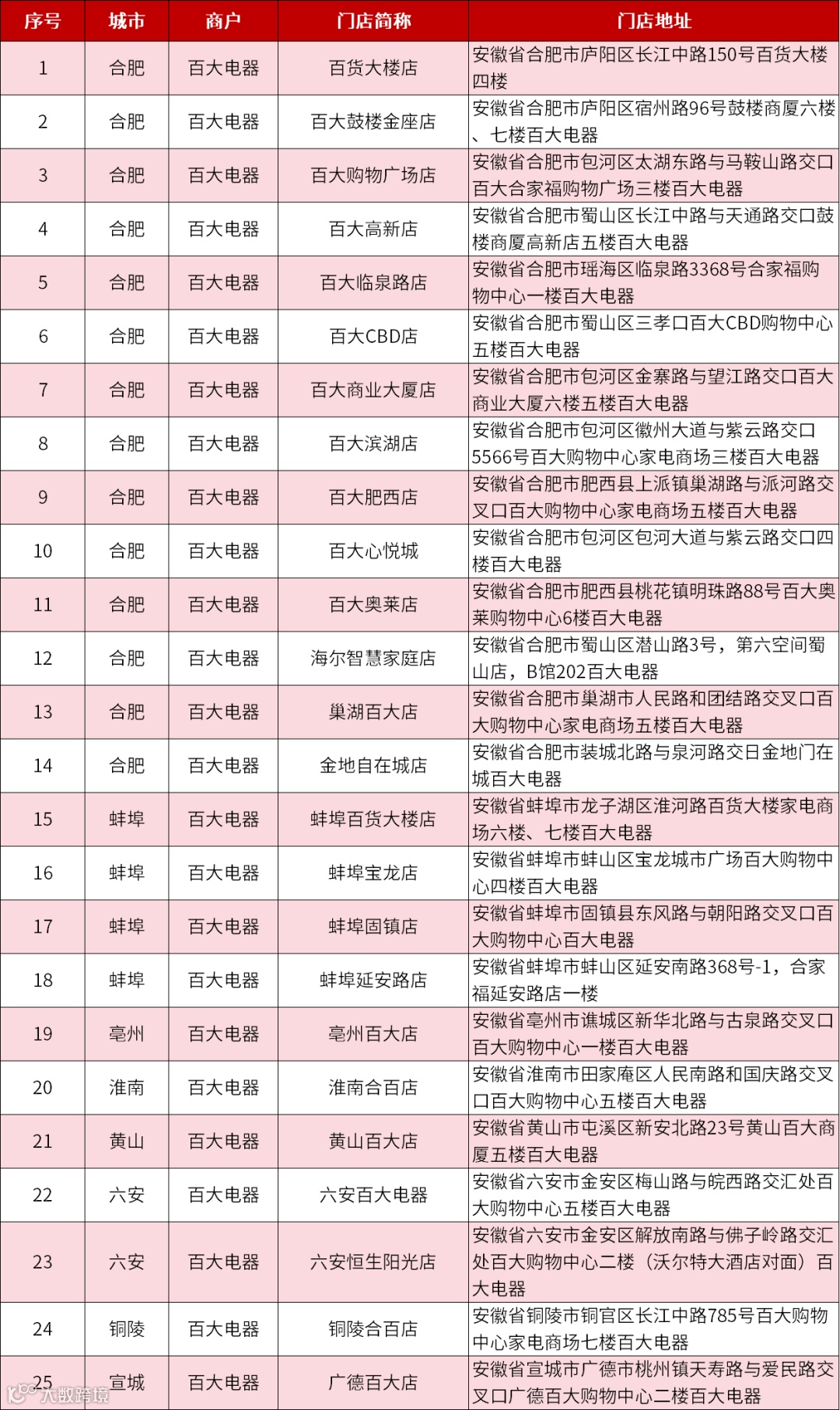 活动期间,安徽地区农业银行卡号62开头银联信用卡持卡客户,在百大电器安徽地区门店使用云闪付APP绑定指定卡bin农行银联信用卡扫码分期消费支付,即有机会参与最高立减400元免息分期手续费优惠活动(仅限分期消费,普通消费不参加)。单用户单日可享1次优惠,单月可享2次优惠。先付先享,用完即止。
