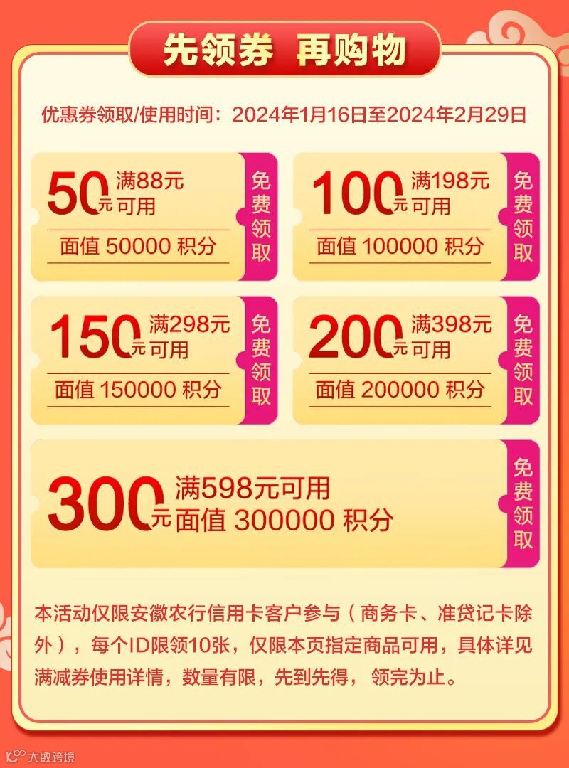 低至5折!满598元立减300!农行信用卡商城年货节来了!