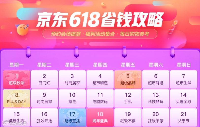 5、6月3日-6月12日为品类日,通过每日一品类的狂欢发放各类优惠福利。