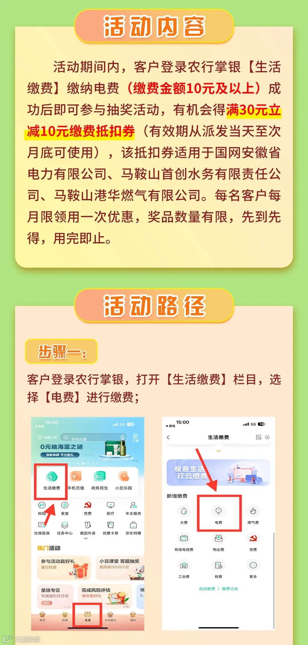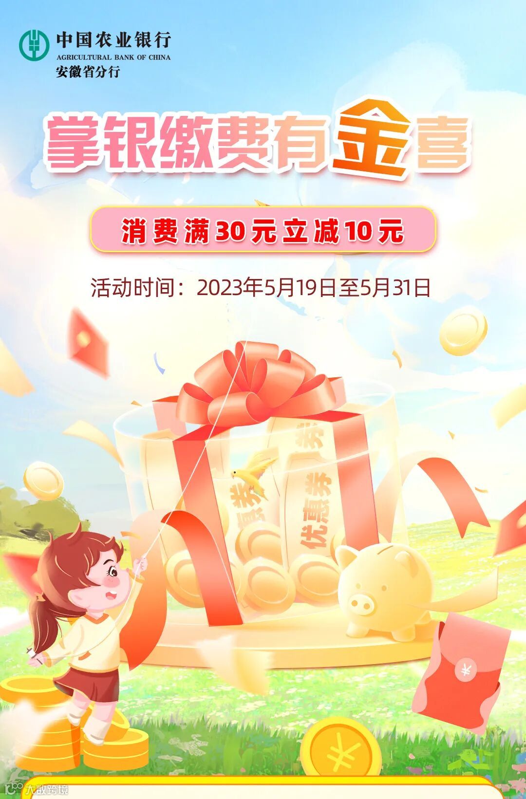 【马鞍山分行】缤纷夏日送福利,掌银缴费立得10元优惠券!